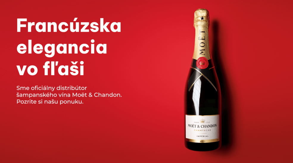 Od 1. júla 2025 sme oficiálnym distribútorom ikonických značiek rodiny Moët & Hennessy! V našom e-shope teraz nájdete šampanské, koňaky, rumy a iné, ktoré udávajú štandard luxusu po celom svete. Pozrite si náš výber a objavte legendy, ktoré patria na každý výnimočný stôl.