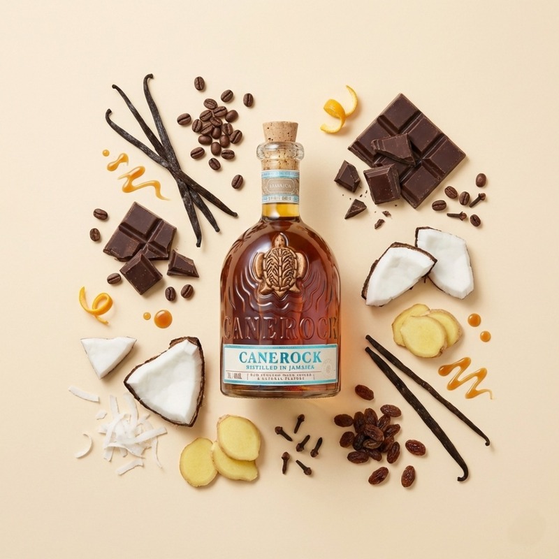 Po zrení v sudoch z amerického dubu je Canerock obohatený o starostlivo vybrané prírodné ingrediencie. Používajú sa vanilkové lusky z Madagaskaru, dužina karibského kokosu a divoký jamajský zázvor, ktorý dodáva jemnú pikantnosť a energiu. Každá z týchto zložiek bola zvolená tak, aby zvýraznila charakter destilátu bez jeho potlačenia.