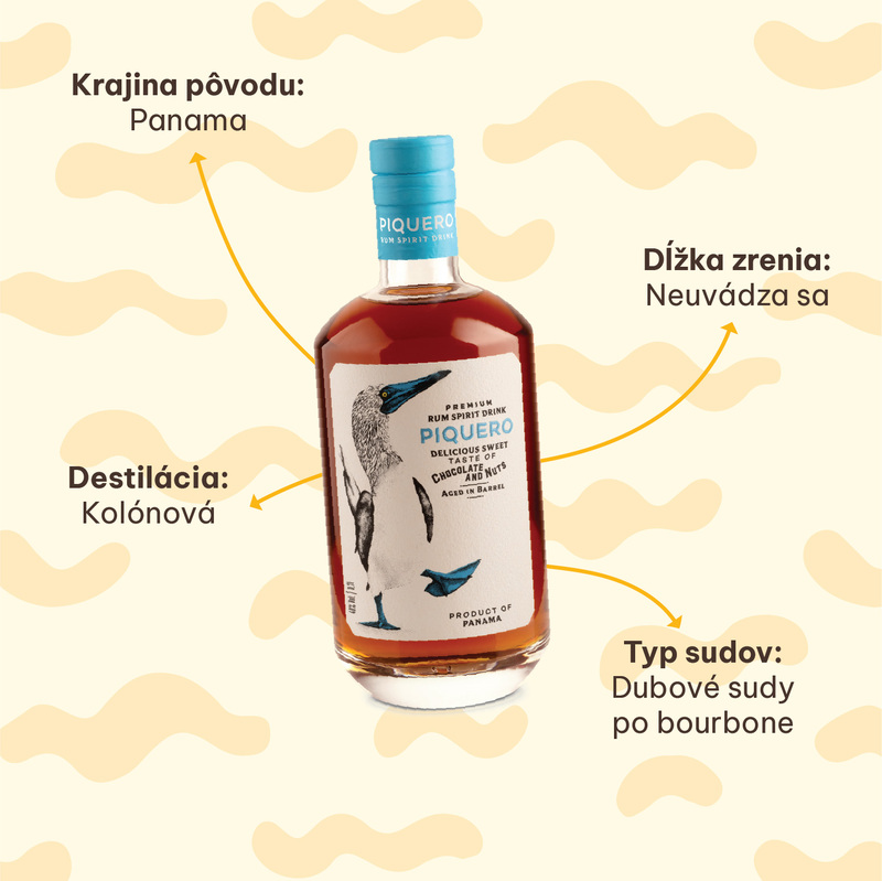 Piquero je prémiový rumový spirit, ktorý pochádza z tropickej Panamy. Lahodnú rumovú chuť plnú sladkých tónov čokolády, orechov a cookies dopĺňa dizajnová etiketa. Na nej nájdeme Sulu Modronohú, ktorú Panamčania nazývajú Piquero.