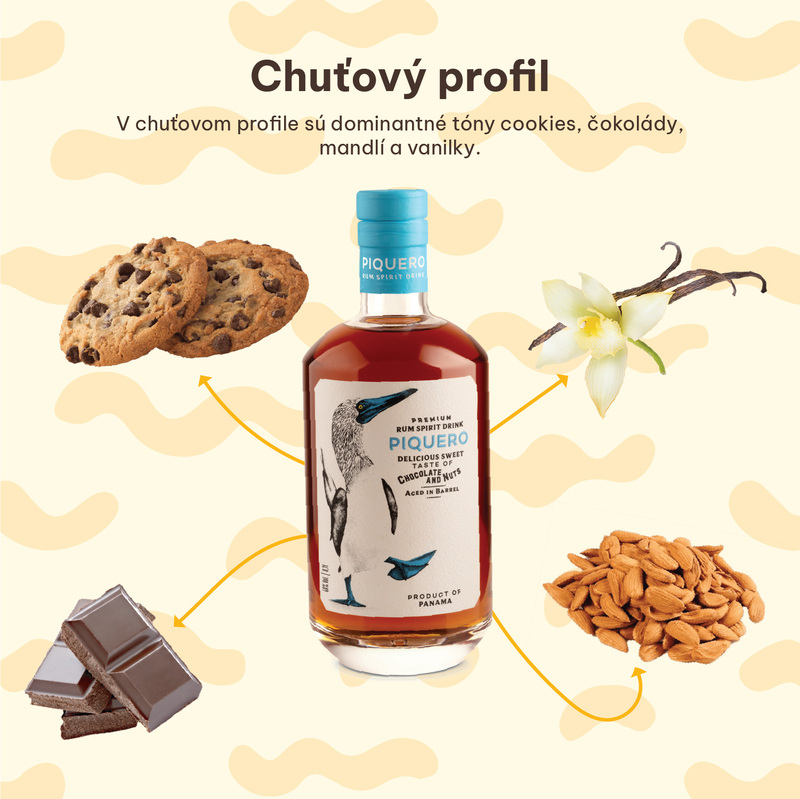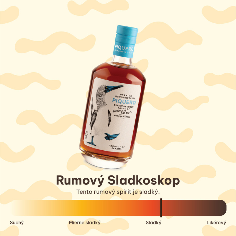 Piquero je rumový spirit z Panamy so sladším chuťovým profilom, ktorý má tóny čokolády, karamelu a jemných orechov. Text uvádza aj náznaky vanilky a ľahkého dreva, ktoré dopĺňajú jeho charakter. Produkt je dostupný na Slovensku a zákazníci ho vyhľadávajú najmä pre výrazne sladký panamský rumový štýl. Na Alko90.sk sa nachádzajú aj iné rumové spirit drinky s podobným chuťovým profilom, čo pomáha pri orientácii medzi sladšími produktmi dostupnými online na Slovensku.