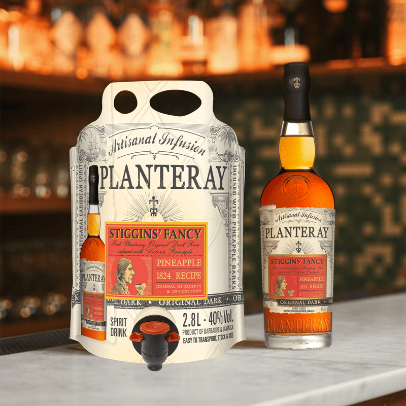 Vo vnútri sa nachádza presne ten istý Planteray Stiggins’ Fancy Pineapple, ktorý je známy z klasickej fľaše. Rum je vytvorený infúziou ananásových šupiek a dužiny do starostlivo vybraných rumov z Barbadosu, Jamajky a Trinidadu. Proces je postavený na skutočnej infúzii ovocia, nie na arómach, vďaka čomu si zachováva prirodzený charakter, plnú chuť a výbornú použiteľnosť v miešaných drinkoch.